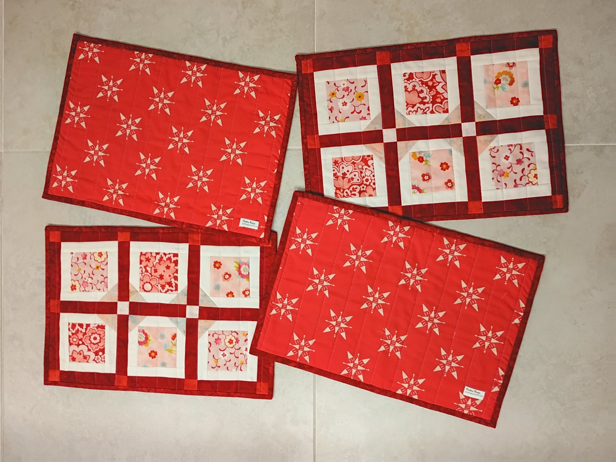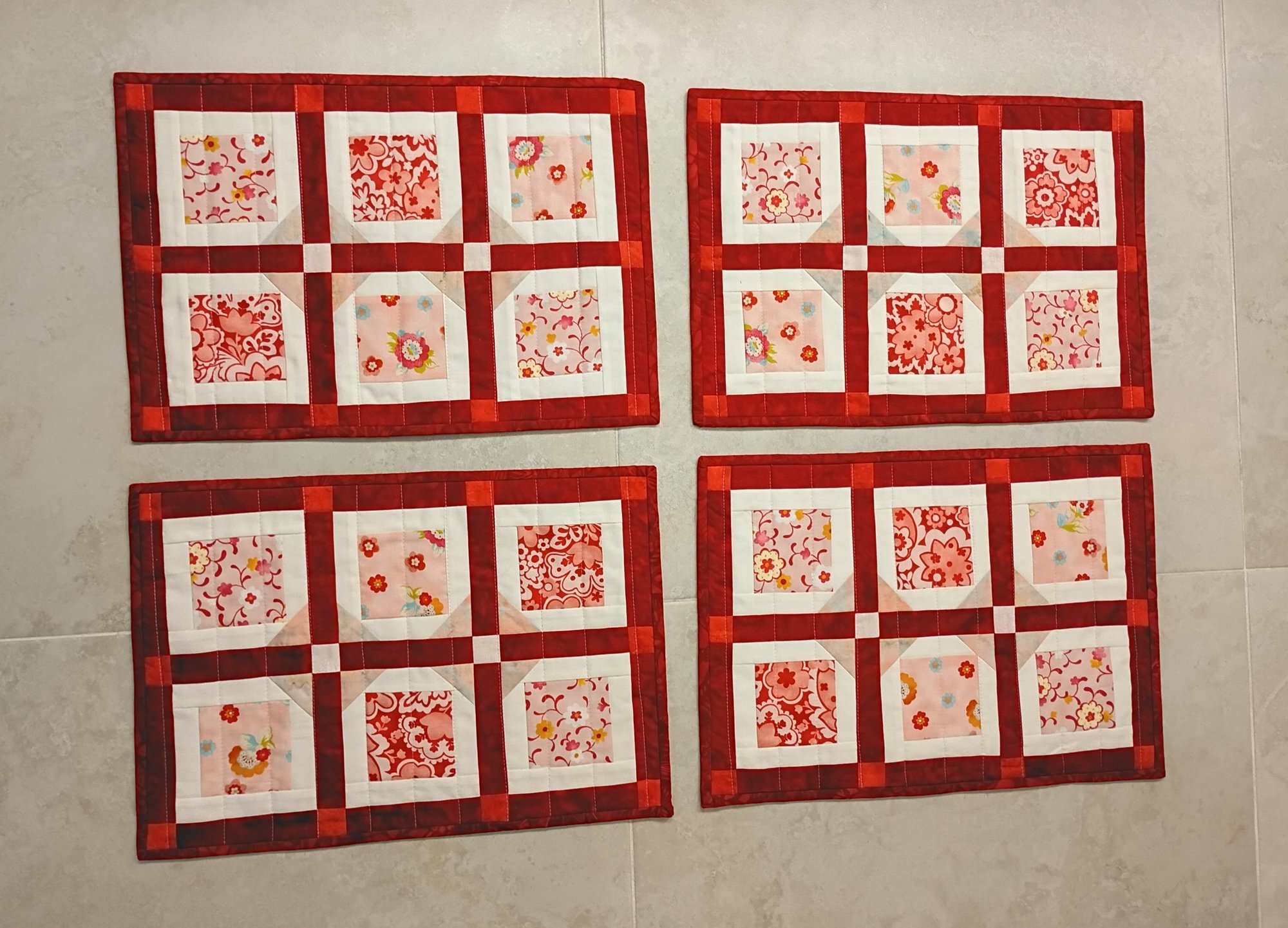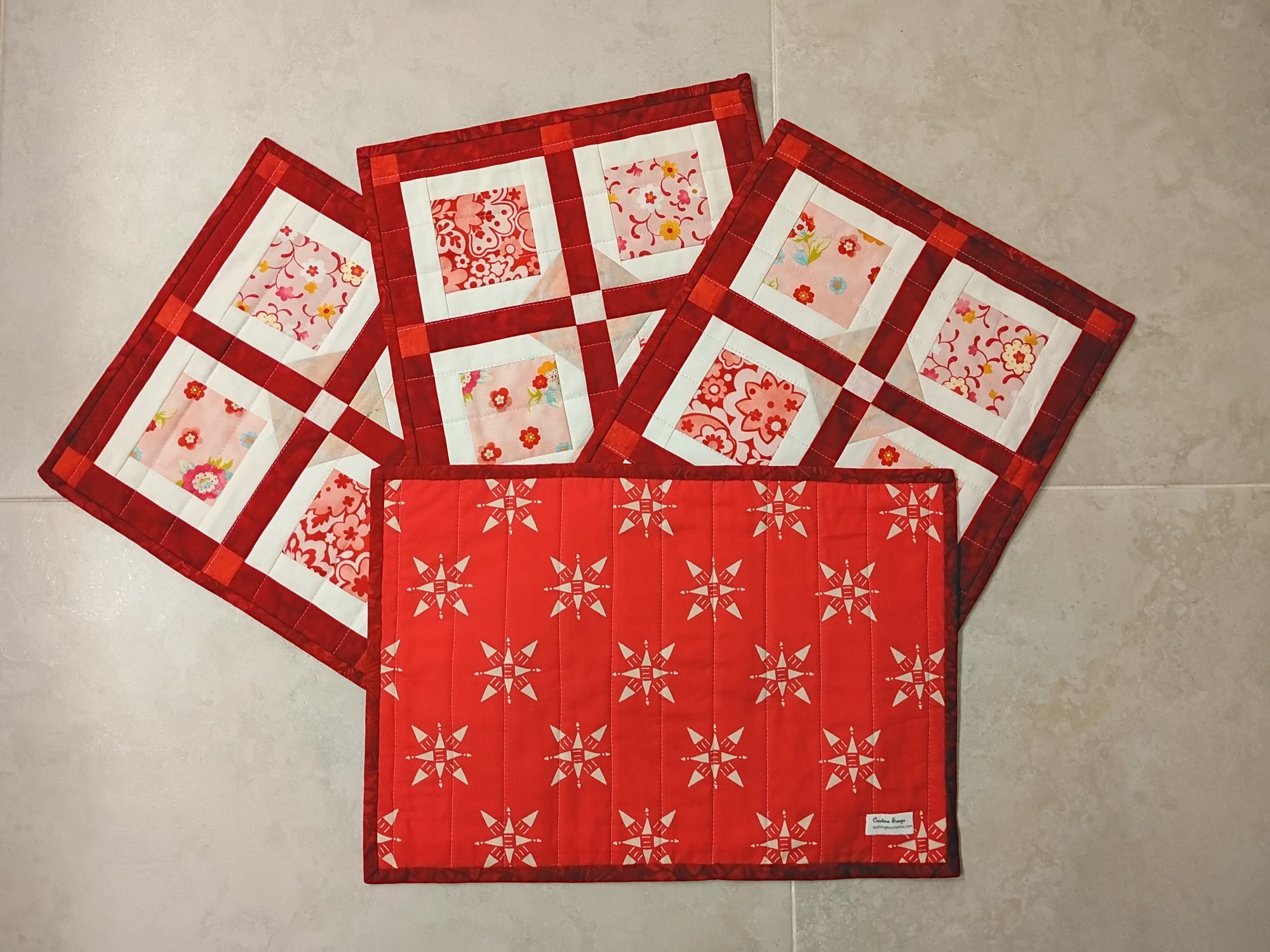 Set of four quilted placemats. Dimensions H12" x L17.5"
